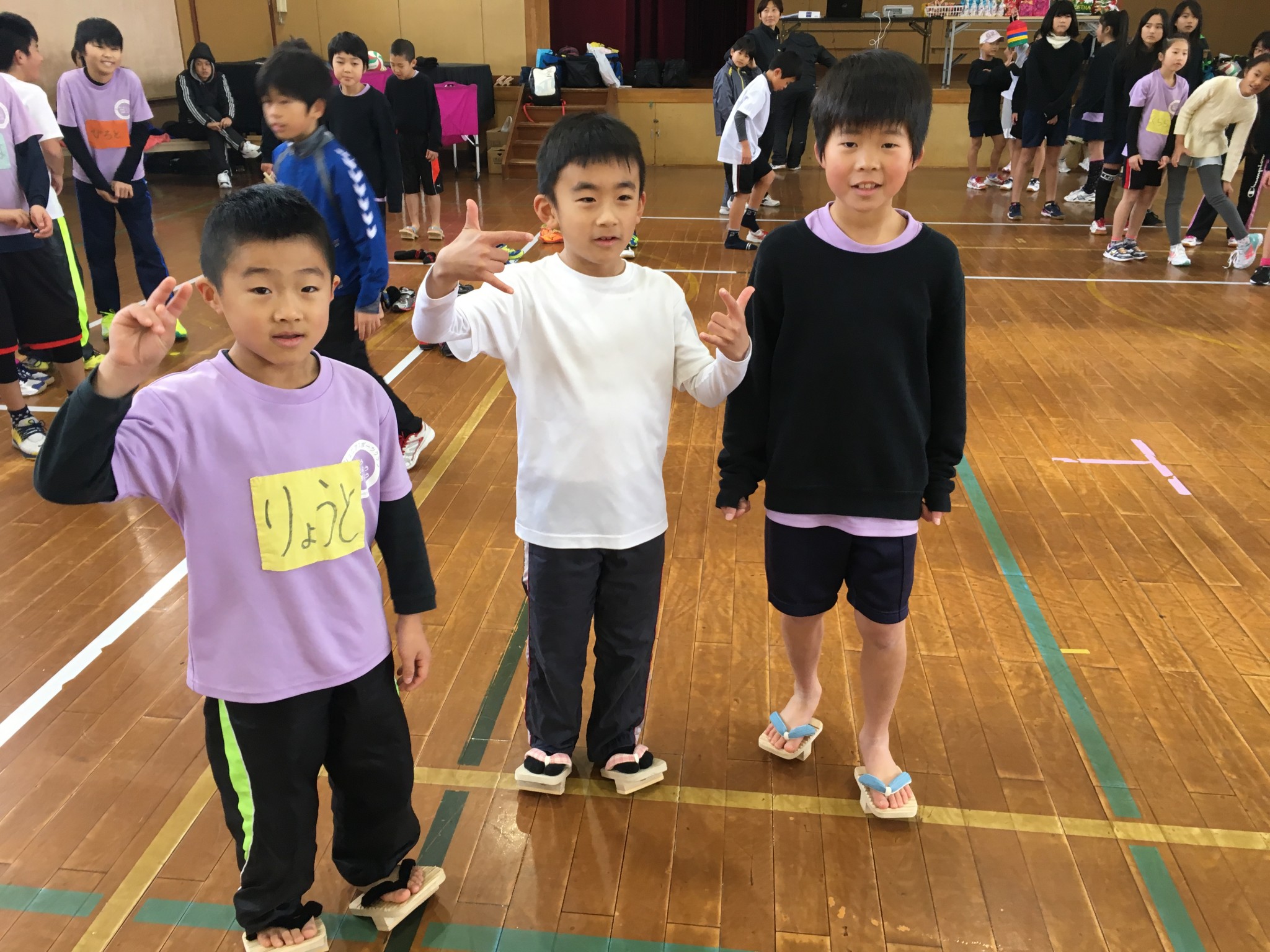 親対子どもで玉入れ競争、○×クイズやビンゴ大会、キンボールや一本下駄体験。