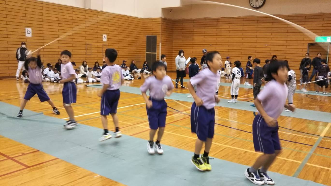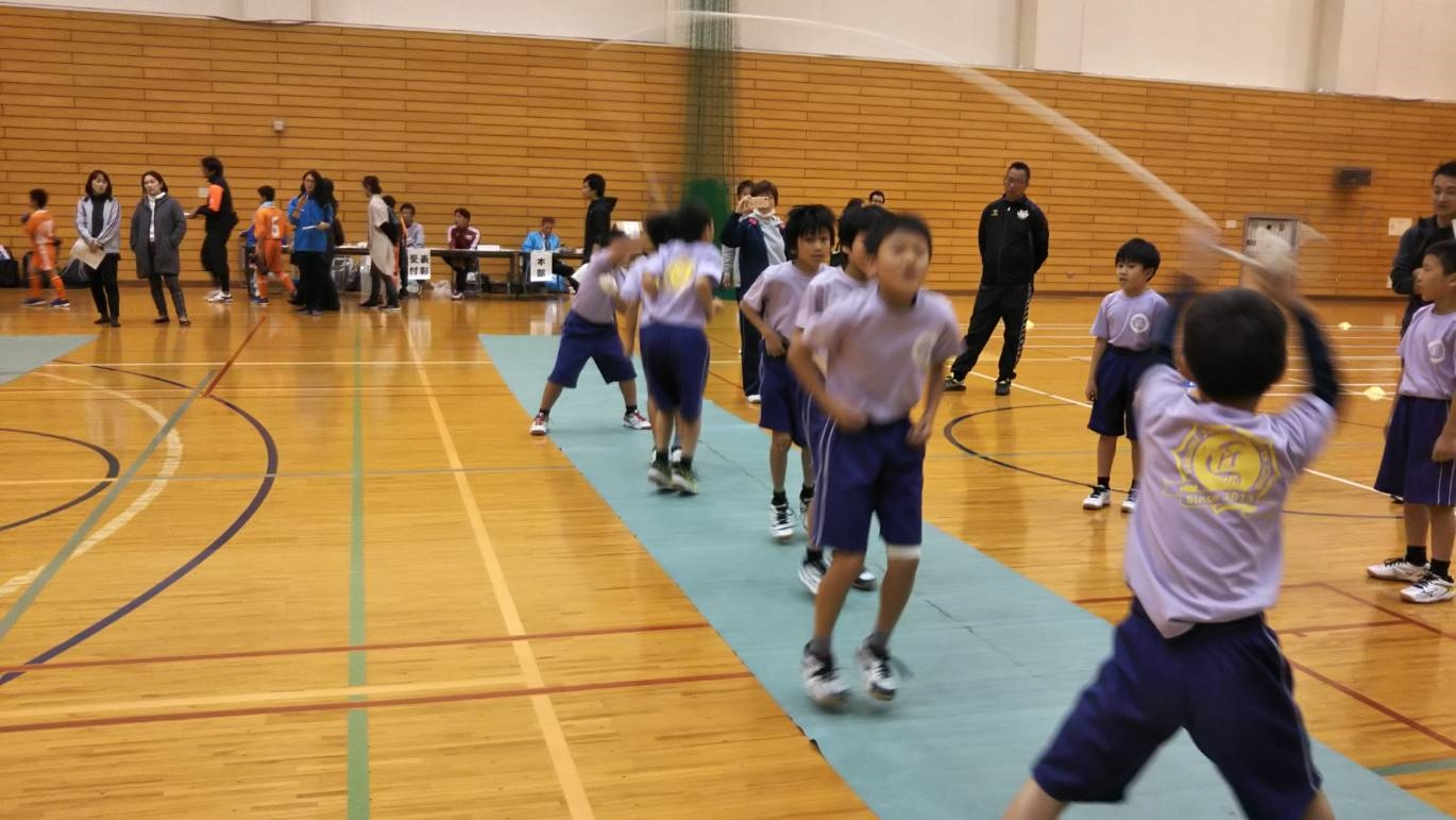 11月17日土曜日スポーツ少年団のスポーツカーニバルに参加しました。この大会は大縄跳び、ドッジボール、体力測定など、日頃とは違う競技、違う種目の子ども達と試合をすることがとても、良い経験になる大会です。日常はバレーボールを中心に行いますが、小学生の間は色々なスポーツを取り入れることも大事だと考えています。ドッジボールでは、相手のどこを狙うとか、誰を狙うとか、どのスピードで投げるだとかたくさんのことを考えてプレーします。大縄跳びでは、みんなで協力して、息を合わせて跳ばないといけません、3分間のペースも考えないと数多く跳べないし、たくさん考えることがあります。ちがった種目をするのに瞬時に判断する能力や対応力などを養うのに役だっています。
